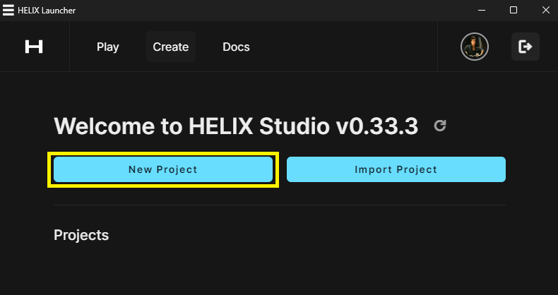 To open HELIX Studio, in the HELIX Launcher click in the Create tab and Click on "New Project"