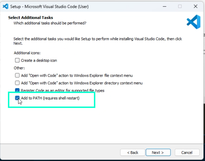 b. During installation, make sure to select the “Add to PATH” option, otherwise HELIX Studio will be unable to open VS Code!