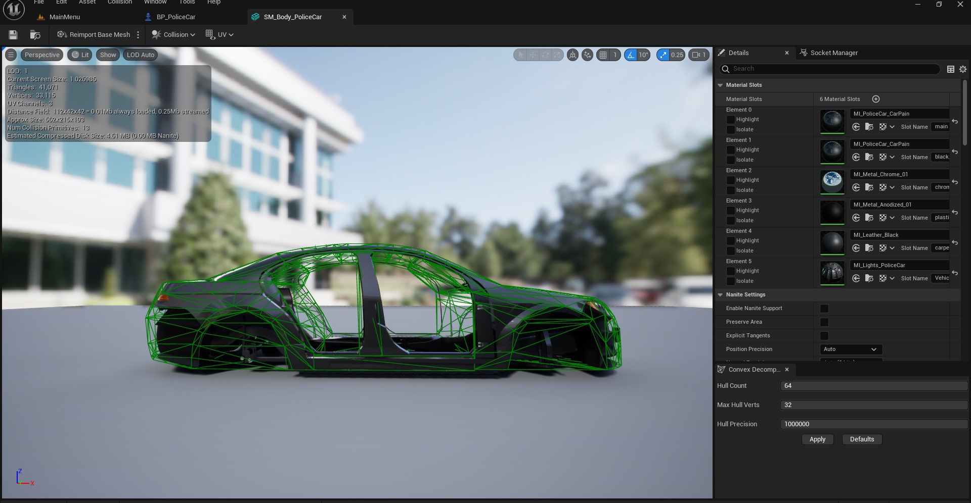 Make directory inside that directory PoliceCar/Art and import your meshes to it.