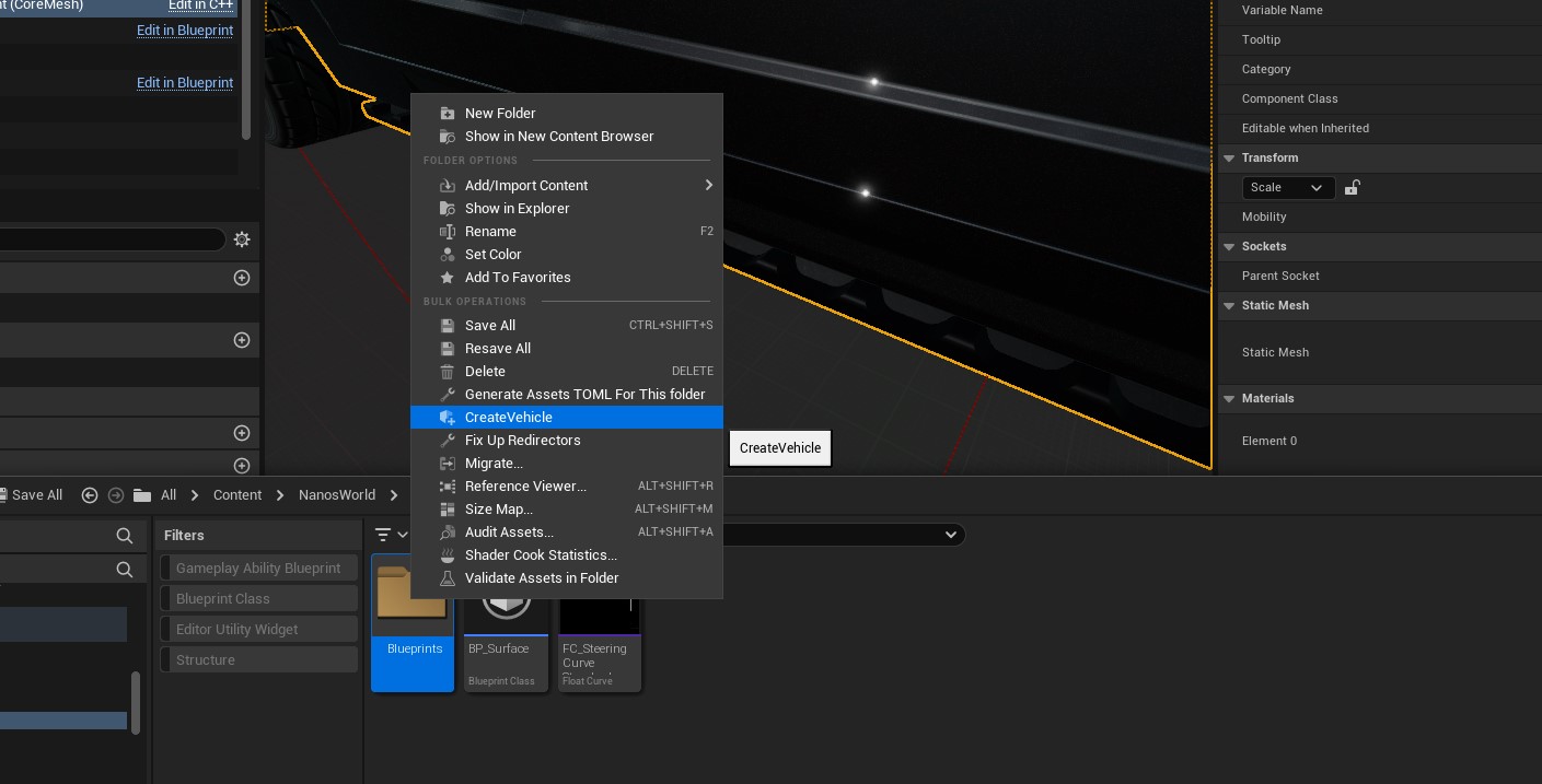 Right click and select the Create Vehicle