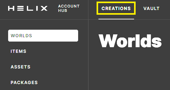 In Creations you can manage WORLDS, ITEMS, ASSETS and PACKAGES.