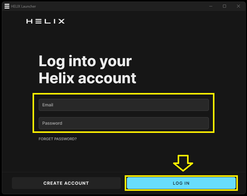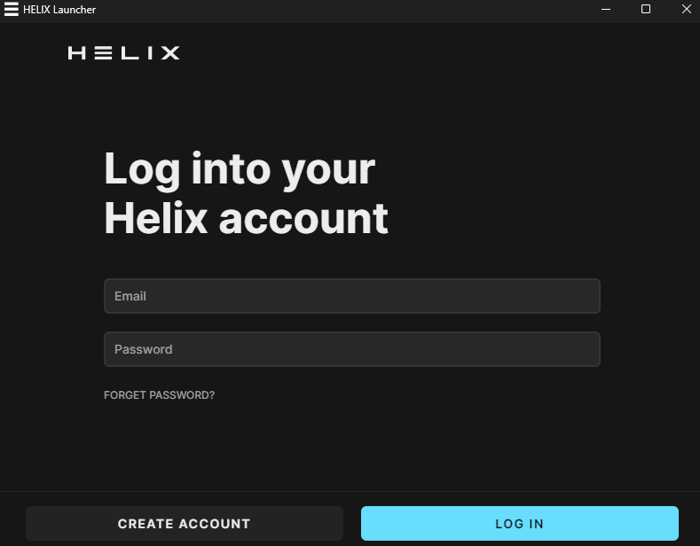 The first time the HELIX launcher is excecuted, it will request the account information to login