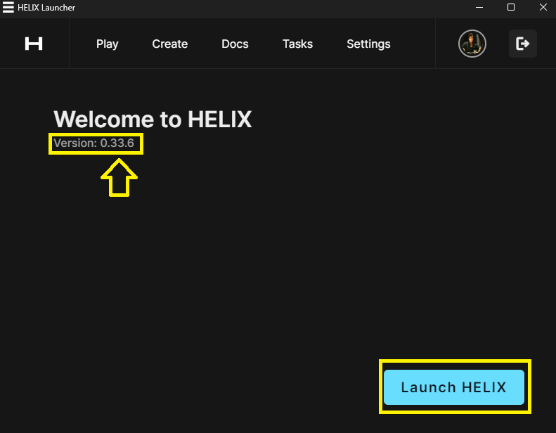 Now the HELIX launcher will display the current installed version and the Game Client can be launched by clicking on the "Launch HELIX" button.