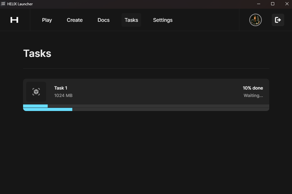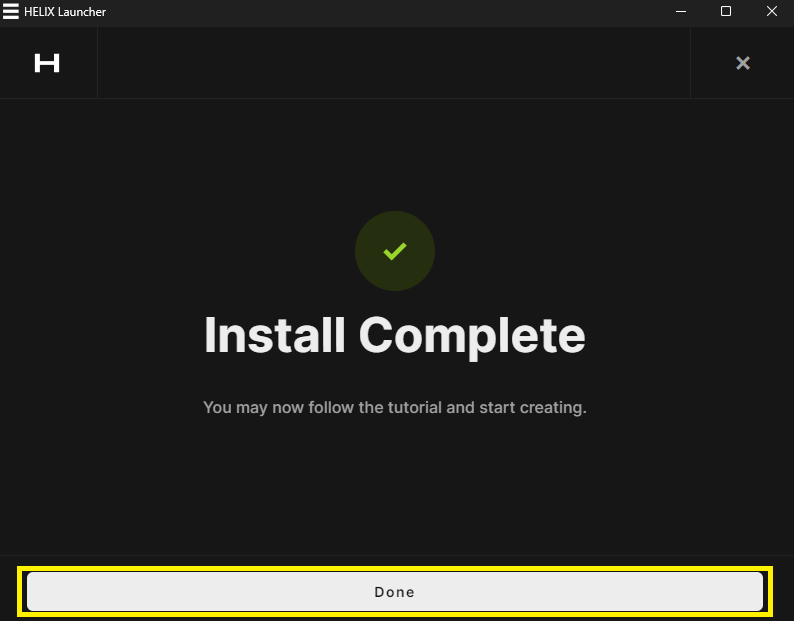 After downloading and installing required files, the HELIX launcher will show the following message.