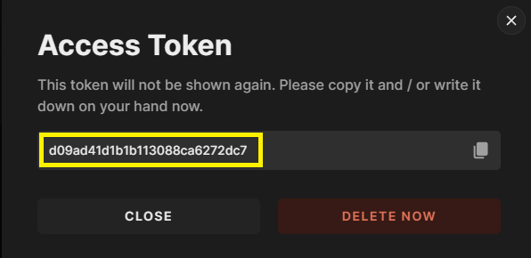 The access token will be generated and displayed onscreen, please copy it and save it safely