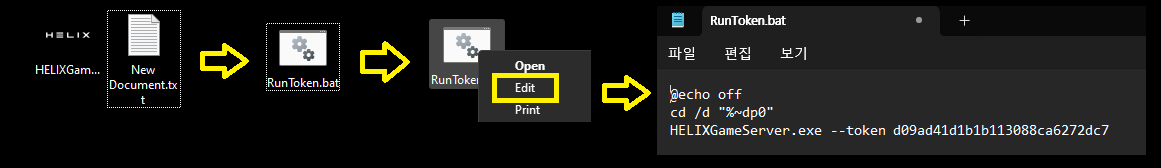 1.- Create a new text document on the same folder where the HELIXGameServer.exe is.